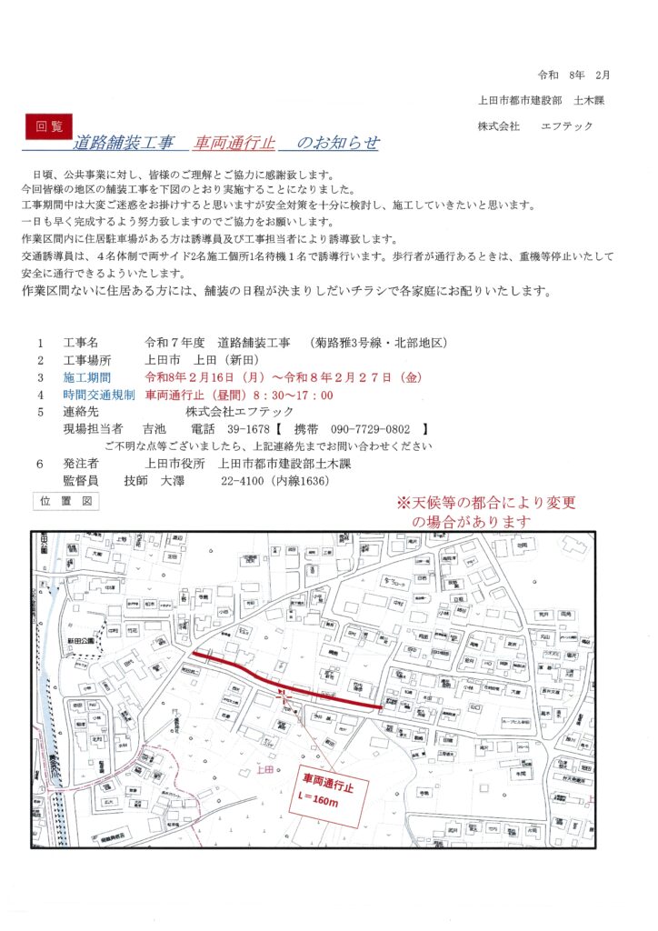 道路舗装工事のお知らせ – R8.2