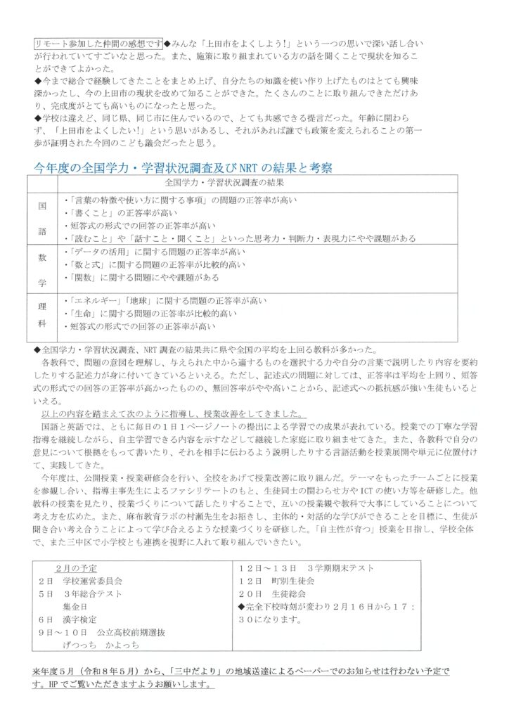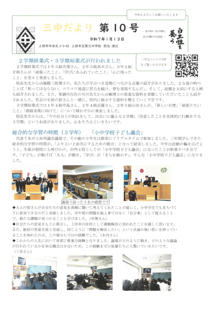 ②三中だよりNo.10 – R8.1.13