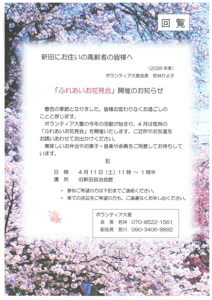 ① ふれあいお花見会のお知らせ-ボランティア大星